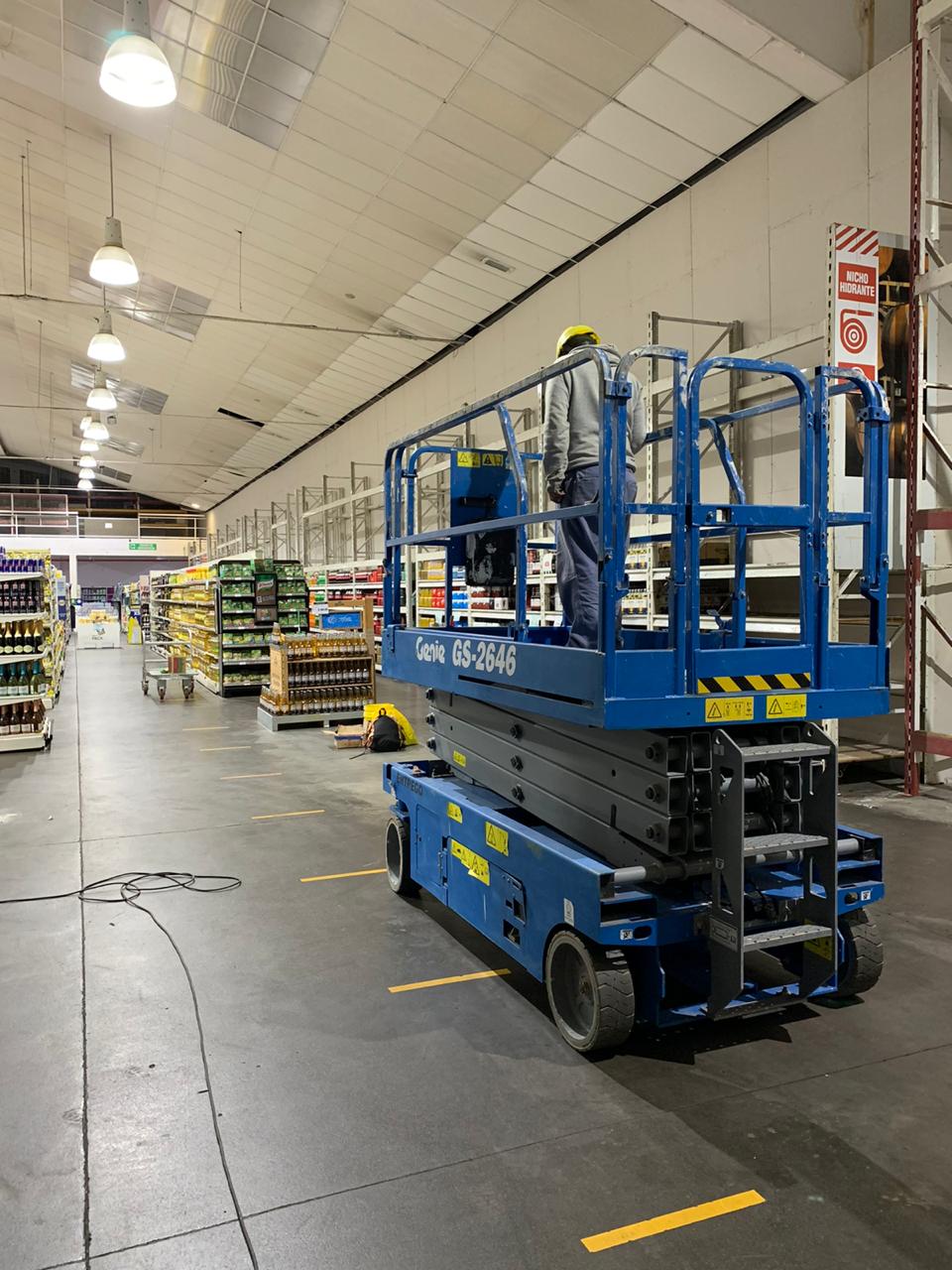 Es una plataforma tipo tijera ideal para trabajos en altura de hasta 11.75 metros, combinando seguridad y eficiencia. Con un diseño compacto y sistema de tracción eléctrica E-Drive, ofrece maniobrabilidad superior y un desempeño silencioso, ideal para interiores o terrenos planos. Su capacidad de carga de 250 kg permite trabajar con herramientas y materiales adicionales, mientras que su estabilidad garantiza un entorno seguro para el operario. Perfecta para mantenimiento, construcción ligera y operaciones en espacios industriales